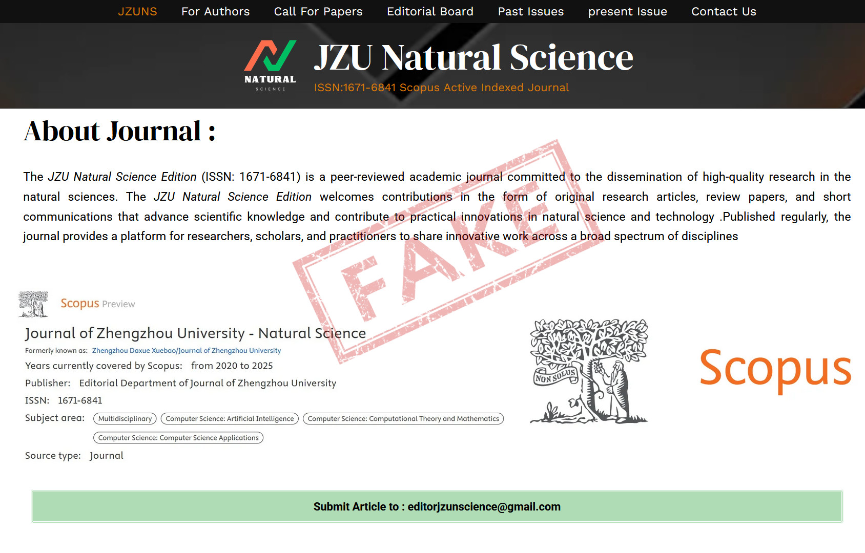 一项信息源显示,《郑州大学学报(理学版)》被一网站(naturalscience.fyi)仿冒