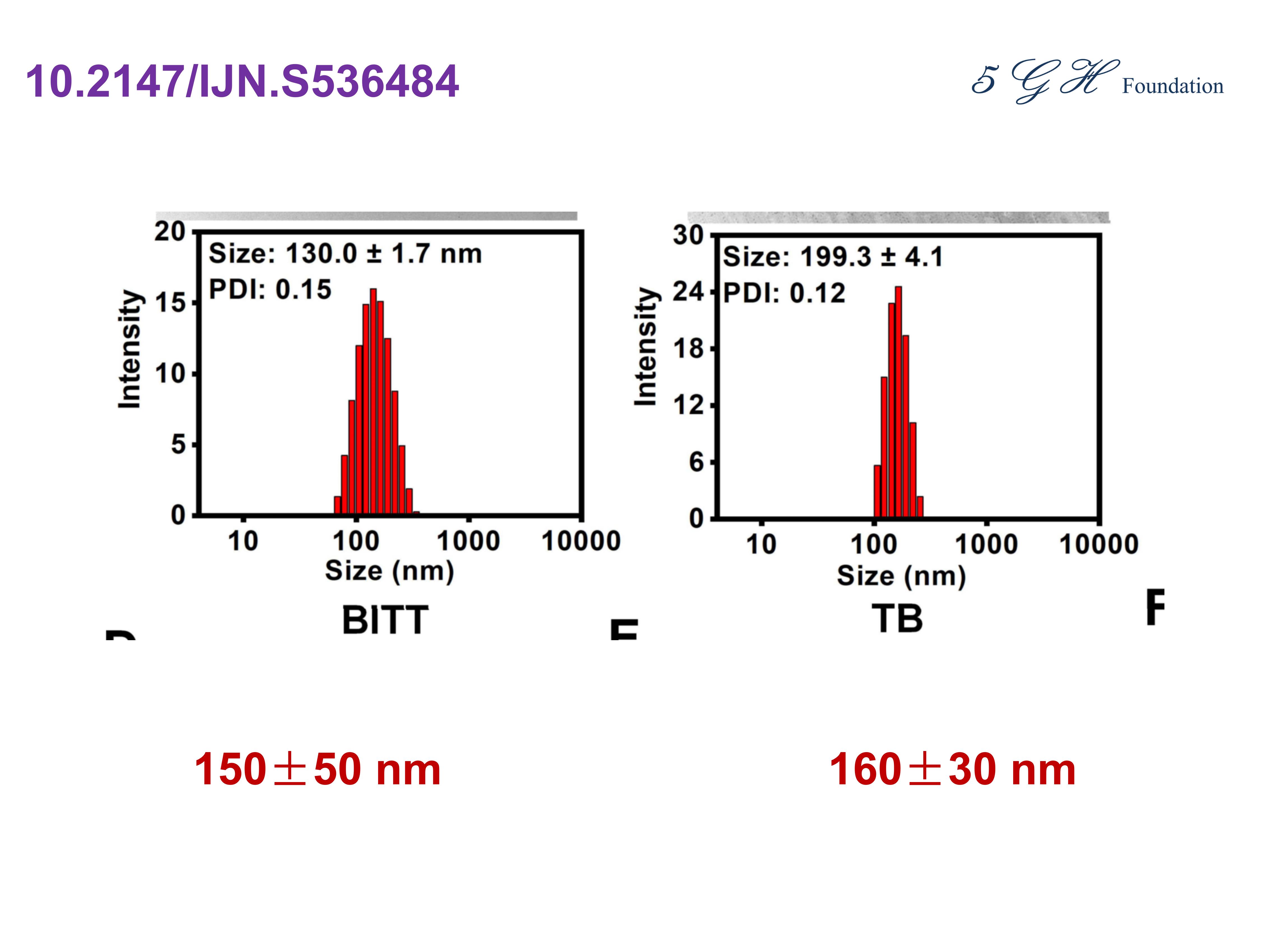In Figure 1A and 1B of this article, the authors claim the size for the BITT and TB are about 130.0±1.7 nm and 199.3±4.1 nm, respectively. However, these are inconsistent to the bars shown in the figure, and the standard deviations seem to be too small.